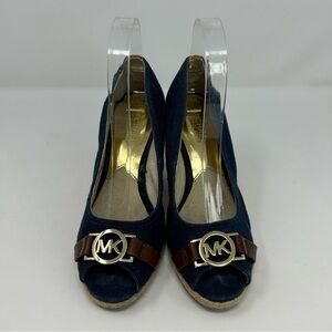 Michael Michael Kors Denim Blue Peep Toe Espadrille Wedges Size 7
