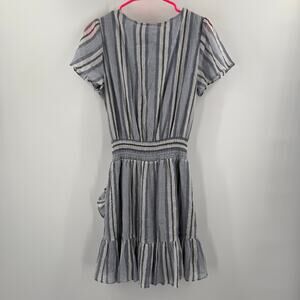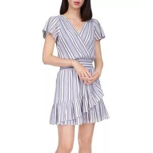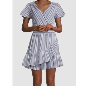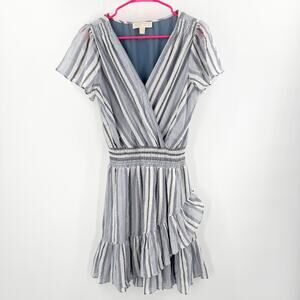 Michael Michael Kors Dress Size Small NEW Short Sleeve Blue Silver Stripe Faux Wrap Dress NWOT