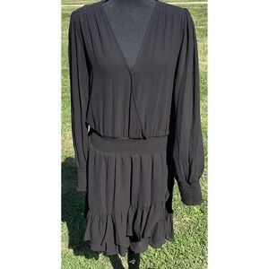 Michael Michael Kors Dress Womens Medium Black Surplice Long Sleeve Ruffle Hem