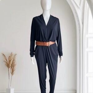 Michael Michael Kors Elegant Black Jumpsuit with Leather Belt Size M