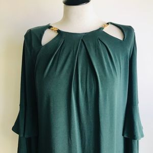 Michael Michael Kors Emerald Green Chain Neck Bell Sleeve Shift Dress Small