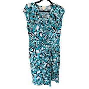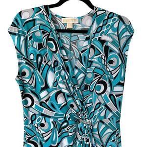 Michael Michael Kors Funky Retro Print Teal Wrap Dress Size Large
