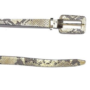 Add a touch of sophistication to any outfit with this stunning gold and neutral snake print belt. The textured finish and sleek square buckle create a modern, luxe feel that elevates jeans, dresses, or tailored trousers alike.
