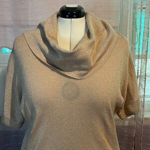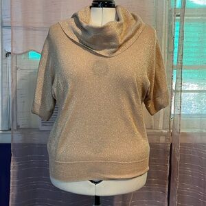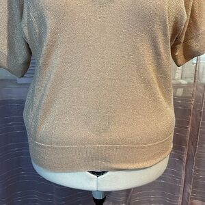 Gold metallic shimmery short sleeve sweater blouse by Michael Kors