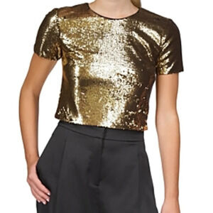 Keywords: Sparkle, sequins, gold, Michael Kors, Michael Michael Kors, cropped top, metallic, party, evening, special occasion