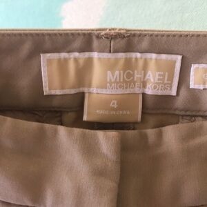 Michael Michael Kors, Gramercy fit pants. Two front zip pockets with silver tone zippers. Two back button closure pockets. Belt loops. Zip fly. Size 4. See photos for measurements to ensure fit.