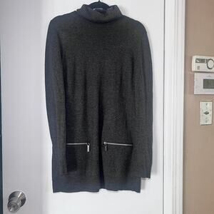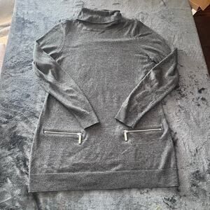 Michael Michael Kors women’s medium gray turtleneck sweater tunic/dress featuring two functional front zipper pockets. Soft knit fabric, ribbed cuffs and hem. Perfect for pairing with leggings or boots.