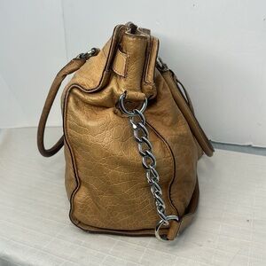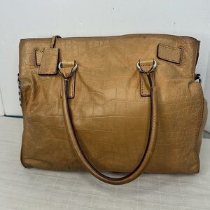 This simple Hamilton tote from Michael Kors is a worthy buy. It has been crafted from leather in a timeless tan croc Embossed leather and decorated with an engraved padlock on the front. The bag has two handles, a shoulder strap, and a spacious fabric interior. This creation is ideal for everyday use.