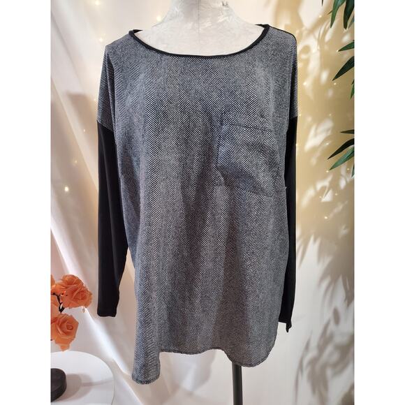 Michael Michael Kors Herringbone Blouse Top Womens Plus Size 2X Flowy Career Black White