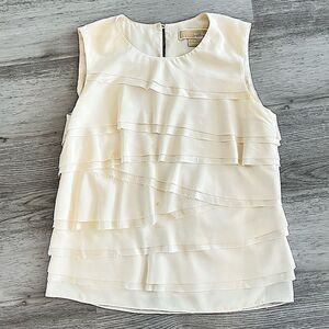 Michael Michael Kors Ivory Silk Blend Tiered Ruffle Sleeveless Blouse Size P