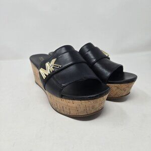 Michael Michael Kors Jilly black cork Platform slide wedge sandals womens size 9