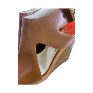 Michael Michael Kors Josephine Leather Wedge Sandals – Size 8.5 (Luggage Brown)