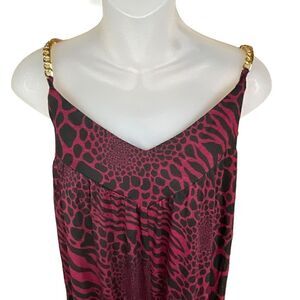 Jumpsuit Reddish Black Leopard Zebra Print by Michael Michael Kors V Neck Wide Leg Gold Toned Chunky Chain Straps Crisscross Back Adjustable Straps Fabric Belt Side Zipper Women Size Large