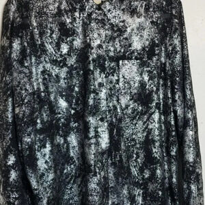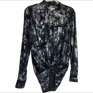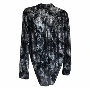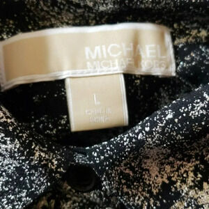 Michael Michael Kors L Sheer black metallic silver button down shirt top Retro