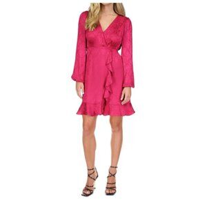 Michael Michael Kors LARGE Jacquard Snakeskin-Print Ruffled Mini Dress Deep Fuch