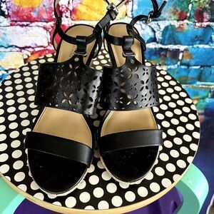 Michael Michael Kors Leather Upper Espadrille Wedge Cut Out Sandals 7.5