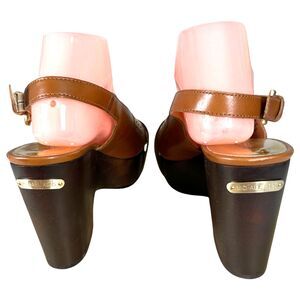 Michael Michael Kors Brown Leather Wood Chunky Platform Wedge Heel Size 10 NEW with Tags Other