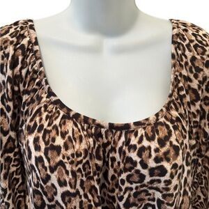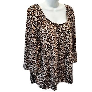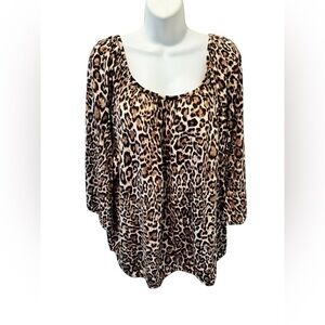 Michael Michael Kors Leopard Print Knit Top Blouse Sz 3X 3/4 Sleeve Scoop Neck (22W-24W)