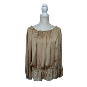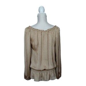 Michael Michael Kors Light Brown Long Puff Sleeve All Over MK Logo Blouse Size 4