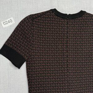 Michael Michael Kors Logo Knit Bodycon Dress Brown Black Short Sleeve Size S