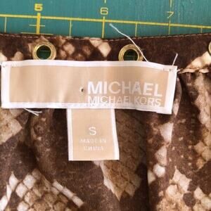 Michael Michael Kors Long Sleeve Rivet Neck Snake Top Tunic Khaki Brown Small