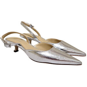 Michael Michael Kors Luna Kitten Slingback Pump Heels Size US 5.5M Silver Metal
