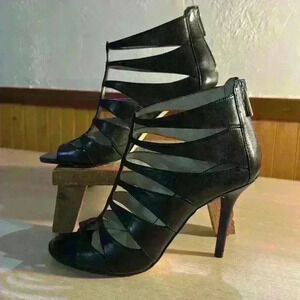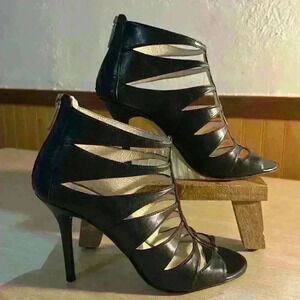 Michael - Michael Kors Maris Open Toe Black Leather Heeled Sandals are in Excellent Used Condition. These amazing heels will turn heads and get you noticed. Original priced at $150 the luxury heels can be yours for just $100!!
