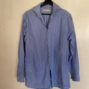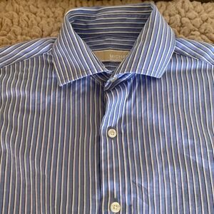 Michael Michael Kors Men Size M Blue White Stripes Career Party Button Up Shirt