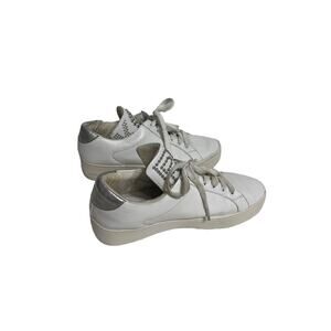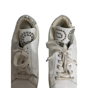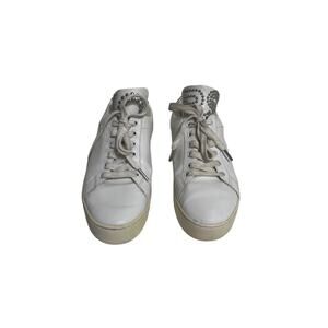 Michael Michael Kors Mindy Lace Up Leather Studded Logo White Sneakers Silver 8.5