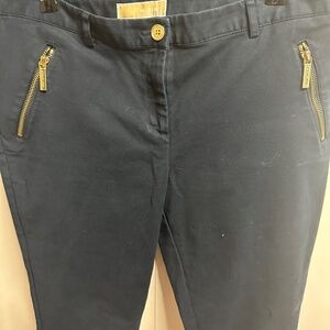 Michael Michael Kors Navy Ankle Pants with Gold Zipper Detail – Size 10
