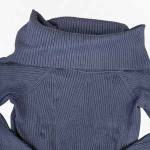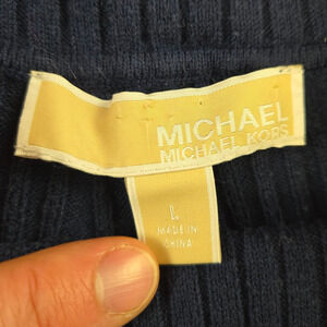 Michael Michael Kors Navy Blue Ribbed Off Shoulder Designer Sweater Size Large