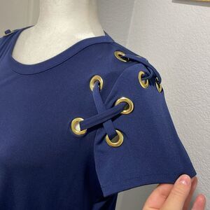 Michael Michael Kors Navy Blue Short Sleeve Shift Dress with Grommet Size Medium