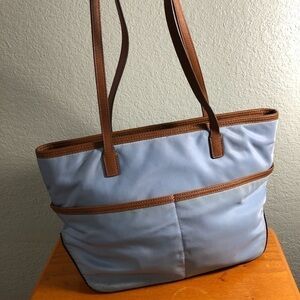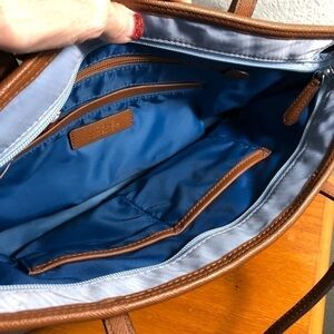 Michael Michael Kors fabric and leather trim ,zip top bag front has two pockets back has two slip pockets inside