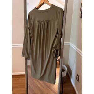 Michael Michael Kors Olive Green Shift Dress Lace Up V-Neck Bell Sleeve Size S