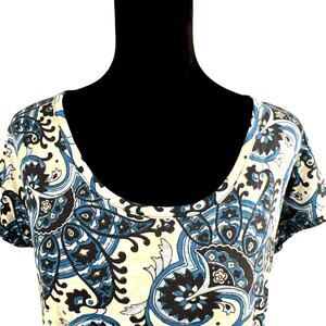 Michael Michael Kors Paisley Cap Sleeve Scoop Neck Top Sz Small Blue White Cream