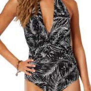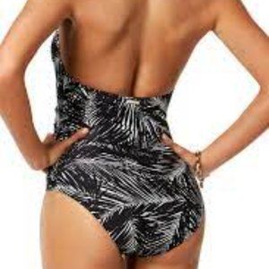 Michael Michael Kors Palm Leaf Print Deep V Twist One Piece Swimsuit Size M