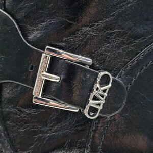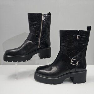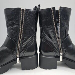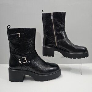 Michael Michael Kors Perry Moto Boot Womens 10 Black Crinkled Patent Leather NEW