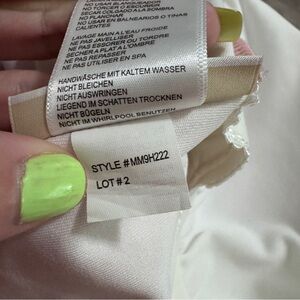 In gently used condition. It’s so well made. It has thick padding in the bra cups. Can be worn on or off shoulder. Hate to part with this one.