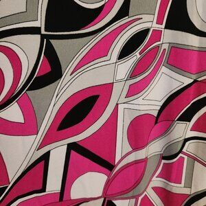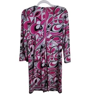 Michael Michael Kors Pink Swirl Sheath Dress Size 10. Pit to pit 22", shoulder to hem 36", Shades of Pink Black Gray White, Bohemian, Retro Mod, Long Sleeve, Scoop Neck, Exposed Zip Closure. Good Pre-Owned Condition