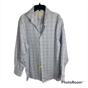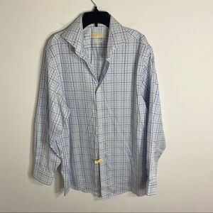 Michael Michael Kors Plaid Button Down Shirt 16 32/33 Non Iron Blue White