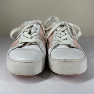 Michael Michael Kors Poppy Lace-Up Sneakers Pink White Size 10 Designer Leather