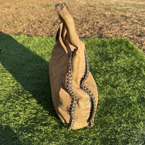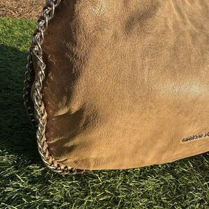 Michael Michael Kors Purse Leather Hobo Taupe Braided Chain Shoulder Bag