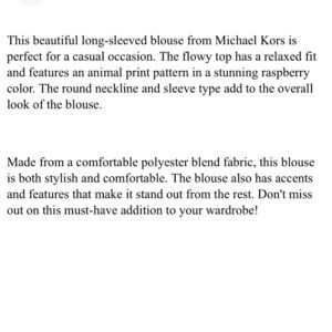 Michael Michael Kors Raspberry Animal Print Flowy Top Long Sleeve Blouse Size M