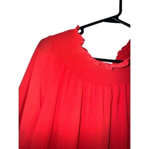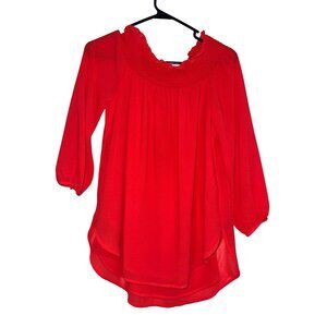 Michael Michael Kors Red Smocked Neck Chiffon Blouse With 3/4 Sleeves XS Womens