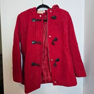 Michael Michael Kors Red Wool Coat Size 4 Hooded Peacoat Horn Toggle Lined