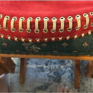 Gorgeous buttery red suede hobo crossbody bag with grommets and gold Whipstitch details for a western Bohemian look. Grommet fringe on the sides is the finishing touch on this unique rocker western style crossbody.