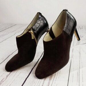 Michael Michael Kors Sammy Ankle Boot Brown Kid Suede and Embossed Crocco Womens 9.5M