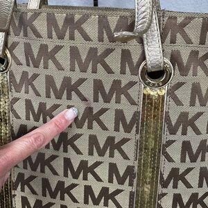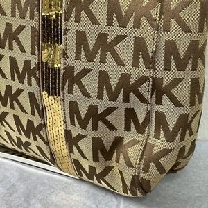 Michael Kors Brown Canvas Logo Sequin Tote Purse Monogram MK