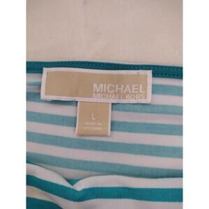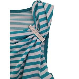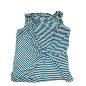 Michael Michael Kors Shirt Womens Large Teal White Stripe Draped Sleeveless Knot