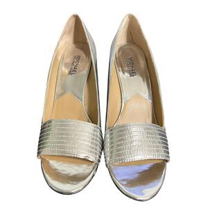 Michael Michael Kors Shoes Womens Size 9.5 Silver Metallic Wedge Heels Open Toe